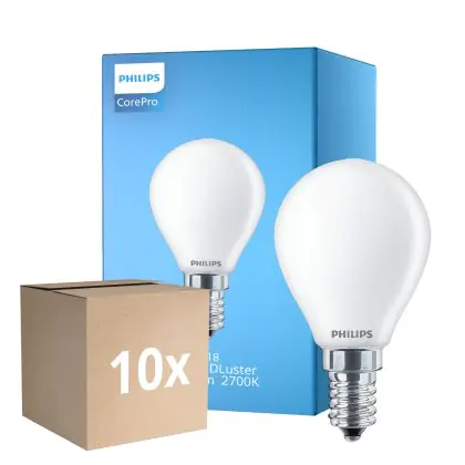 La lampada Confezione Multipack 10x Philips Corepro LED Lustre E14 Sferica Ghiaccio 6.5W 806lm - 827 Bianco Molto Caldo | Sostitutiva 60W è il sostituto perfetto per le tue vecchie lampade 60W con attacco a vite piccolo E14 grazie alla sua tecnologia LED. Passare a LED ti offrirà molti vantaggi!