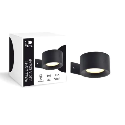 Descrizione D'Lite Luce Da Parete Lucia Nero 1.5W - 830 Luce Calda - | IP54 - Solar Batteria - Sensore Di Luce