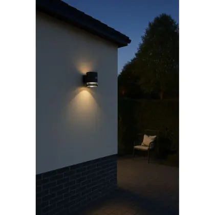 Illumina i tuoi spazi esterni con la D’Lite Solis Wall Light – una lampada da parete a energia solare che unisce design moderno ed efficienza energetica. Con la sua elegante finitura nera e l’effetto luminoso verso l’alto e verso il basso, questa applique valorizza ogni parete esterna offrendo allo stesso tempo un’illuminazione pratica. Il sensore di movimento integrato garantisce che la luce si accenda solo quando necessario, assicurando sicurezza e risparmio energetico.