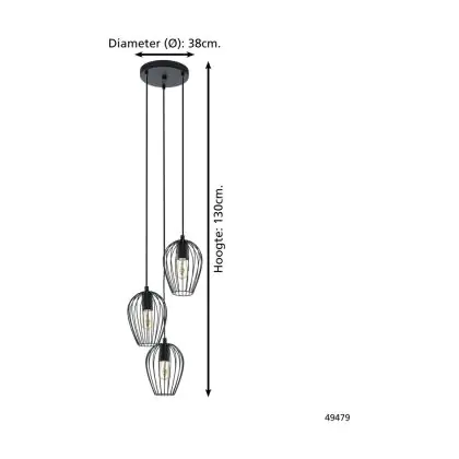 Eglo Luce Pendente Newtown Acciaio Nero | IP20 - Adatto per 3x E27