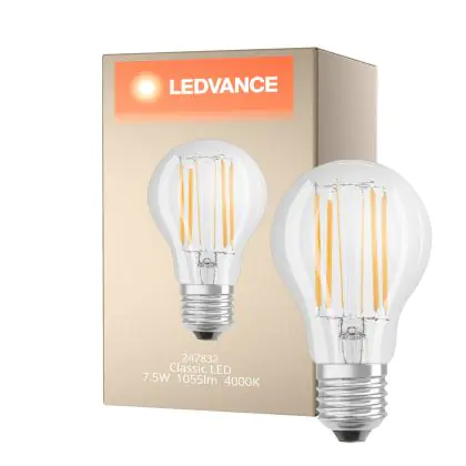 La Ledvance Classic LED E27 Pera Filamento Chiara 7.5W 1055lm - 840 Bianco Freddo | Sostitua 75W è la perfetta sostituzione per la tua lampada convenzionale 75W con attacco E27 grazie alla sua tecnologia LED. Passare a LED ti offrirà tanti vantaggi!