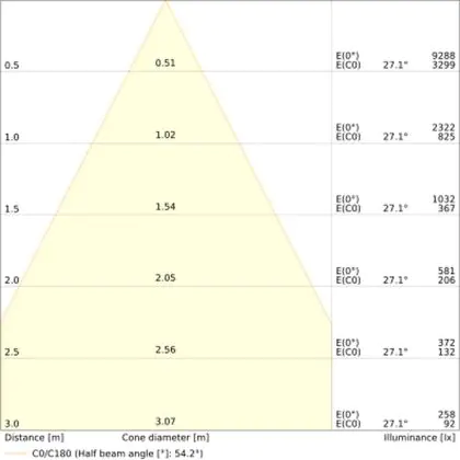 L'apertura del fascio luminoso indica l'angolo del fascio di luce proveniente da una lampada o lampadina. Si misura in gradi (D) e più piccolo è l'angolo, più piccola è l'apertura del fascio di luce.
