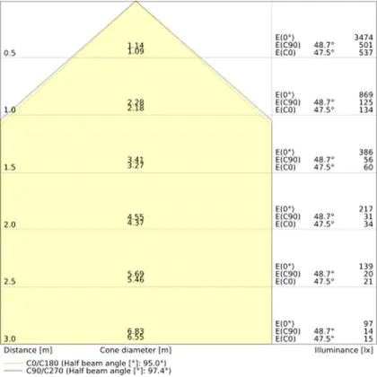 L'apertura del fascio luminoso indica l'angolo del fascio di luce proveniente da una lampada o lampadina. Si misura in gradi (D) e più piccolo è l'angolo, più piccola è l'apertura del fascio di luce.