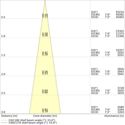 L'apertura del fascio luminoso indica l'angolo del fascio di luce proveniente da una lampada o lampadina. Si misura in gradi (D) e più piccolo è l'angolo, più piccola è l'apertura del fascio di luce.