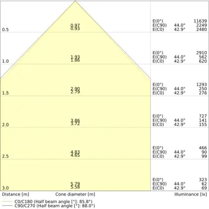 ![]() Il codice colore è una combinazione di resa cromatica (CRI) e colore della luce (Kelvin). La prima cifra indica la resa cromatica (1 = resa del colore molto bassa, 9 = massima resa del colore), mentre la seconda e la terza si riferiscono al colore della luce. Esempio: il codice colore 830 indica una buona resa cromatica (8) e luce bianca calda (3000K). |