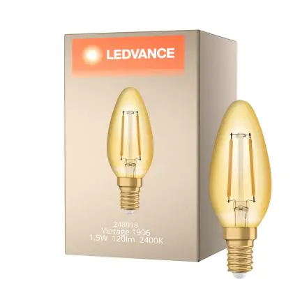 La lampada Ledvance Vintage 1906 LED E14 Candela Oro 1.5W 120lm - 824 Bianco Molto Caldo | Sostitua 15W è il sostituto perfetto per le tue vecchie lampade 15W con attacco a vite piccolo E14 grazie alla sua tecnologia LED. Passare a LED ti offrirà molti vantaggi!