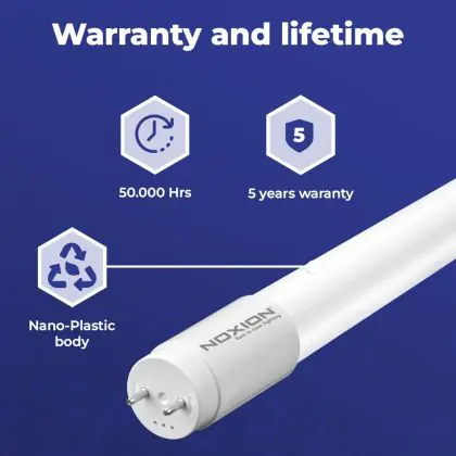 Il Noxion Tubo LED T8 Avant (EM/Mains) Standard Output 7.5W 900lm - 840 Bianco Freddo | 60cm - Sostitutiva 18W è l’alternativa perfetta per il tubo fluorescente standard 18W nelle plafoniere con un reattore. Con questo tubo LED hai una garanzia di una vita media utile molto lunga e 5 anni Lampadadiretta.it di totale garanzia. .