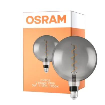 Descrizione Osram Vintage 1906 LED E27 Globe Filamento Smoke 200mm 5W 110lm - 818 Bianco Molto Caldo | Sostitutiva 25W