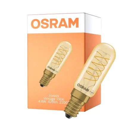 La lampada Osram Vintage 1906 LED Special Shapes E14 Tubular Ambra 4.8W 420lm - 822 Bianco Molto Caldo | Dimmerabile - Sostitutiva 40W è il sostituto perfetto per le tue vecchie lampade 40W con attacco a vite piccolo E14 grazie alla sua tecnologia LED. Passare a LED ti offrirà molti vantaggi!