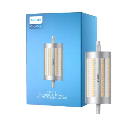 La Philips Corepro LED Lineair R7s 118mm 17.5W 2460lm - 840 Bianco Freddo | Dimmerabile - Sostitutiva 150W è perfetta per la sostituzione della convenzionale Lampada alogena 150W R7s con colore della luce 840 Bianco Freddo. Questa lampada ha una forma A doppio attacco e va alimentata con 220-240 Volt. Passare a led ha molti vantaggi!