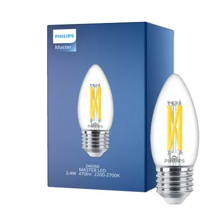 La Philips MASTER LED E27 Candela Filamento Chiara 3.4W 470lm - 922-927 Dim To Warm | Miglior Resa Cromatica - Dimmerabile - Sostitutiva 40W è la perfetta sostituzione per la tua lampada convenzionale 40W con attacco E27 grazie alla sua tecnologia LED. Passare a LED ti offrirà tanti vantaggi!