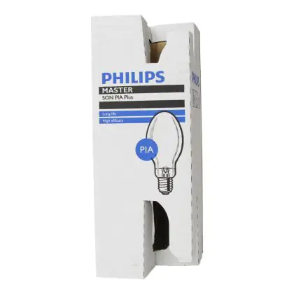 Le Philips SON PIA Plus 100W 220 E40 (MASTER) sono lampade a scarica ai vapori di sodio ad alta pressione con una potenza pari a 100W e un attacco del tipo E40 che garantiscono elevati livelli di efficienza e un ottimo rendimento luminoso. Presentano una vita media davvero incredibile, 36.000 ore. Il flusso luminoso delle Philips SON PIA Plus 100W 220 E40 (MASTER) assume un valore di ben 10000 lumen. Grazie alla robusta struttura i casi di rottura della lampada sono ridotti. Le caratteristiche tecniche della lampada, infine, le consentono di mantenere un flusso luminoso stabile nel tempo.